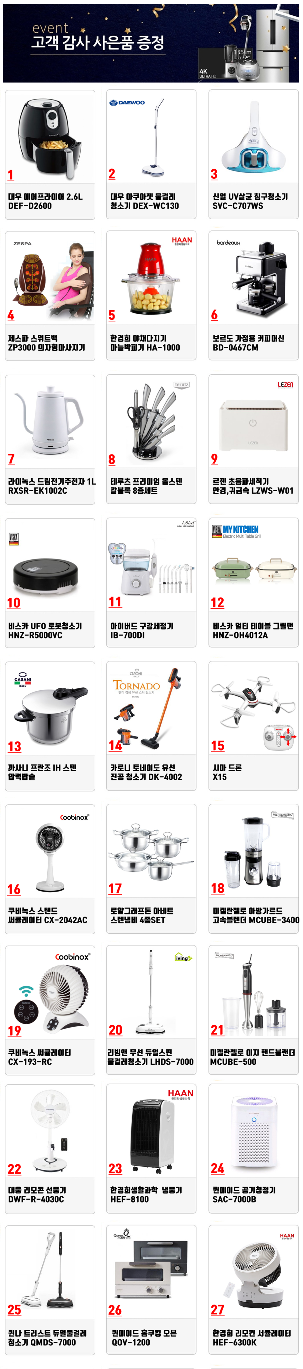 송산연수기렌탈을 신청해주시는 모든 여러분들에게 사은품을 증정해드립니다.