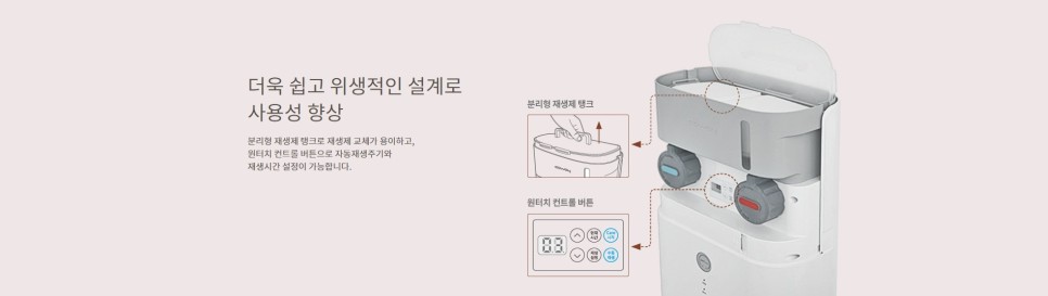 분리형 재생제 탱크로 관리가 편리하도록 제작이 되어있으며