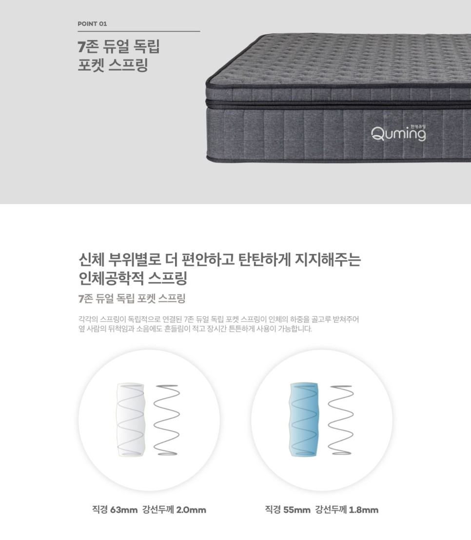 견고한 7존 듀얼 독립 포켓 스프링으로