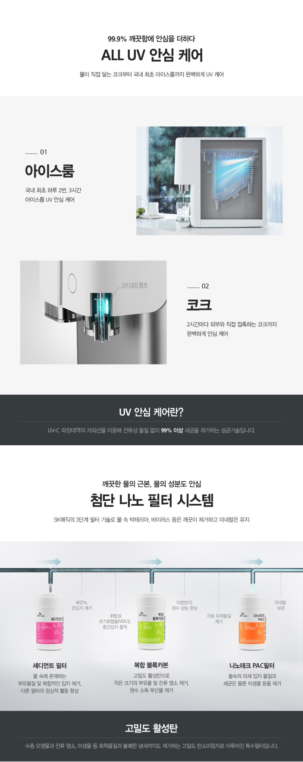 정수기가 자동으로 주요 부분들을 UV케어를 해주기 때문에'