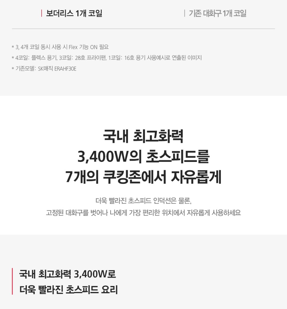 기존 인덕션의 동그란 대화구도와 안내선도를 없엔 보더리스의 인덕션 입니다!