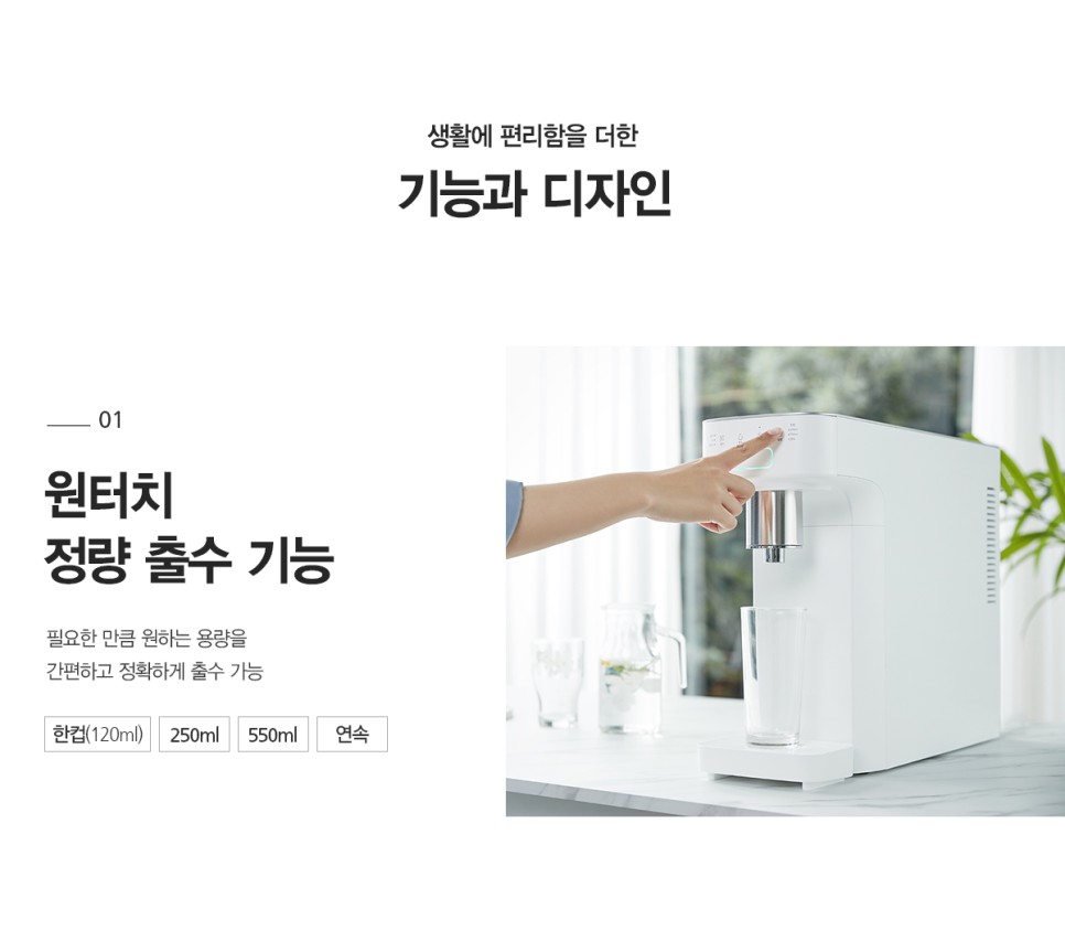 원터치 정량 출수 기능과 3단계 온수 시스템으로