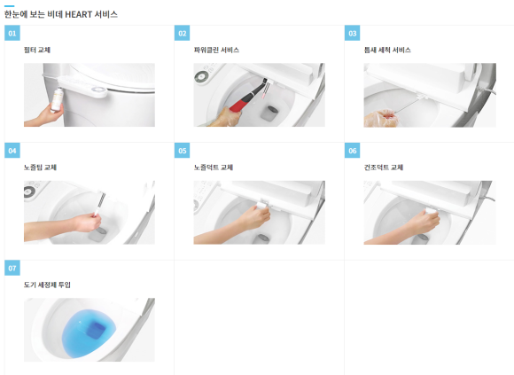 도기 세정제 투입까지 7가지 비데 HEART 서비스로