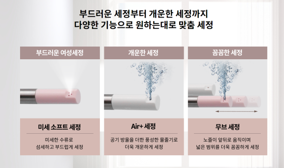 미세 소프트 세정으로 부드럽게, 에어+세정으로 개운하게, 무브 세정으로