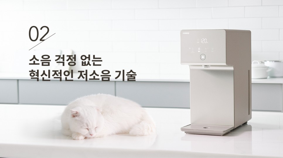 아이콘 정수기는 저소음 기술을 적용하여 더욱 조용하게 사용가능해요!