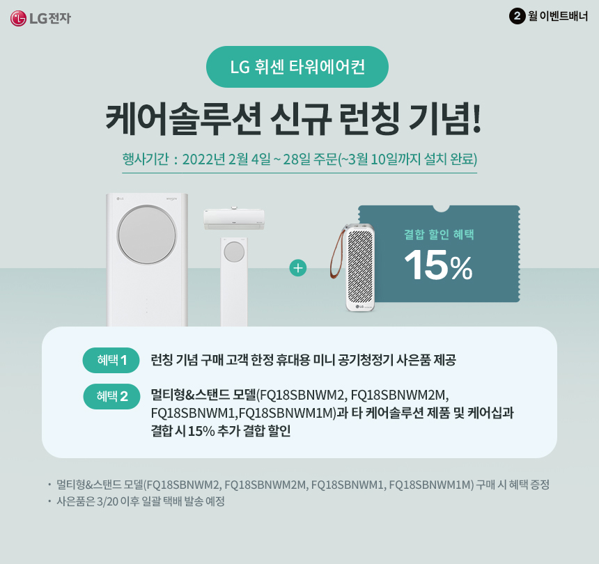 LG 휘센 타워에어컨은 이번에 케어솔루션과 새롭게 런칭된 제품인데요 !