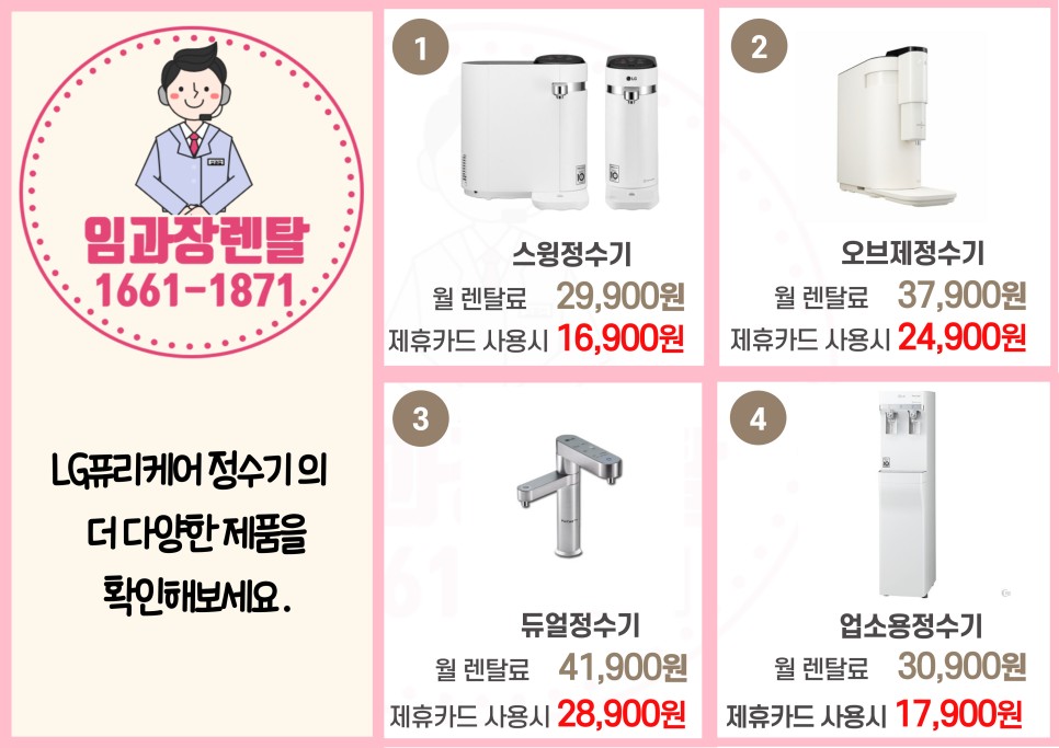 대여 및 임대신청이 필요하신 분들은 언제든 저희 대전엘지정수기렌탈로 연락주세요!