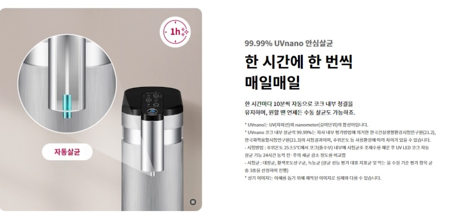 코크 또한 한 시간마다 10분씩 UVnano 기술로 자동 살균을 해주기때문에