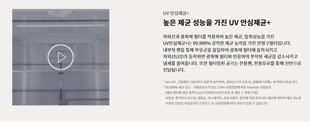 이젠 UVnano 기술로 한 시간에 한 번씩 매일매일 99.99% 살균을 해주고,