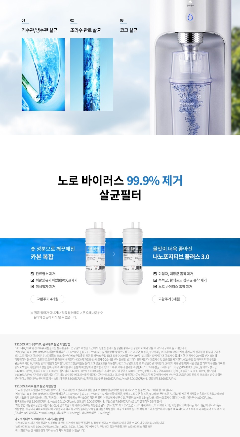 깨끗한 물의 근본인 필터는 노로 바이러스 99% 제거해주는