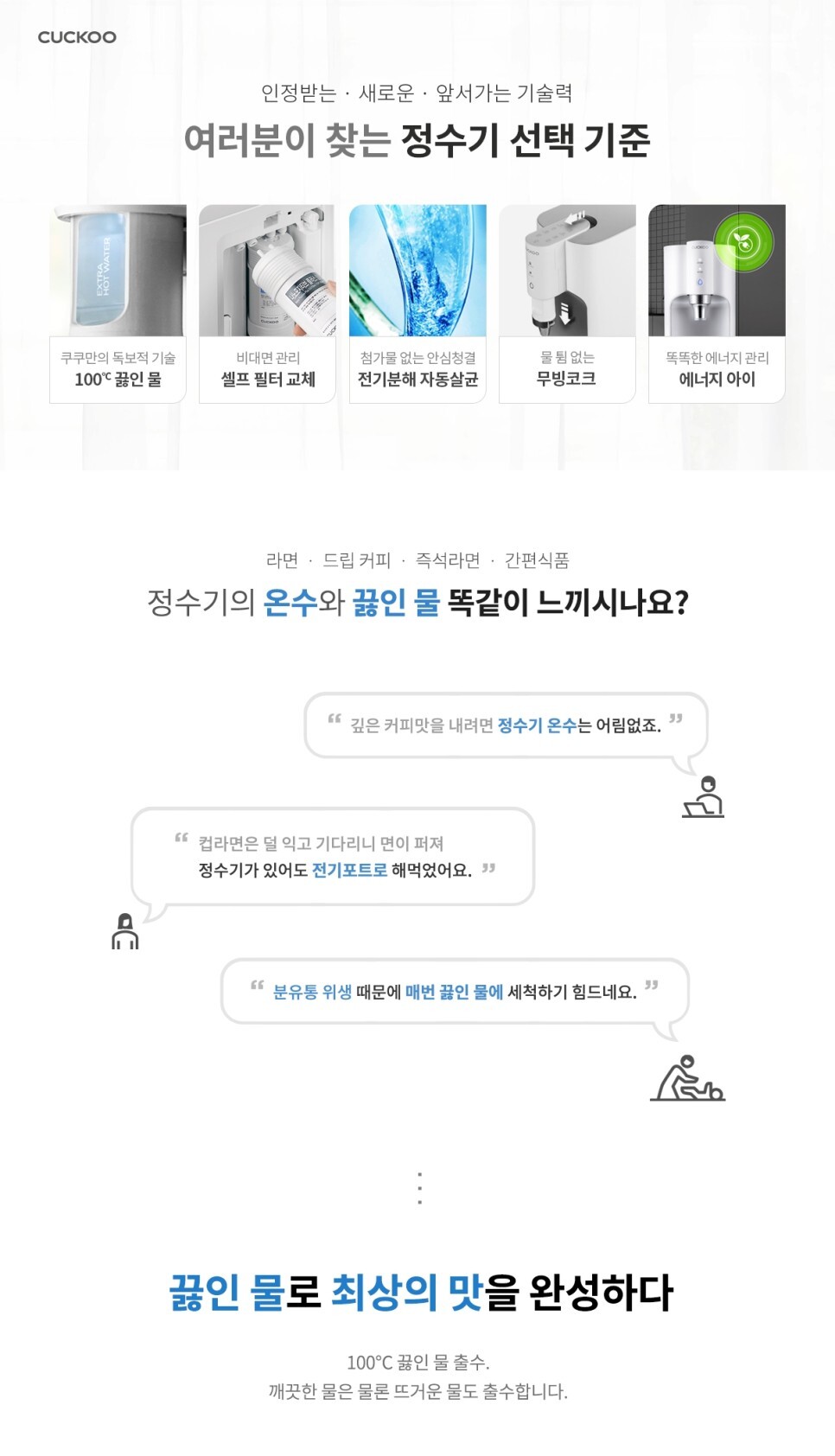 이제는 쿠쿠 끓인물 정수기하나면 그런 번거로움 없어요!