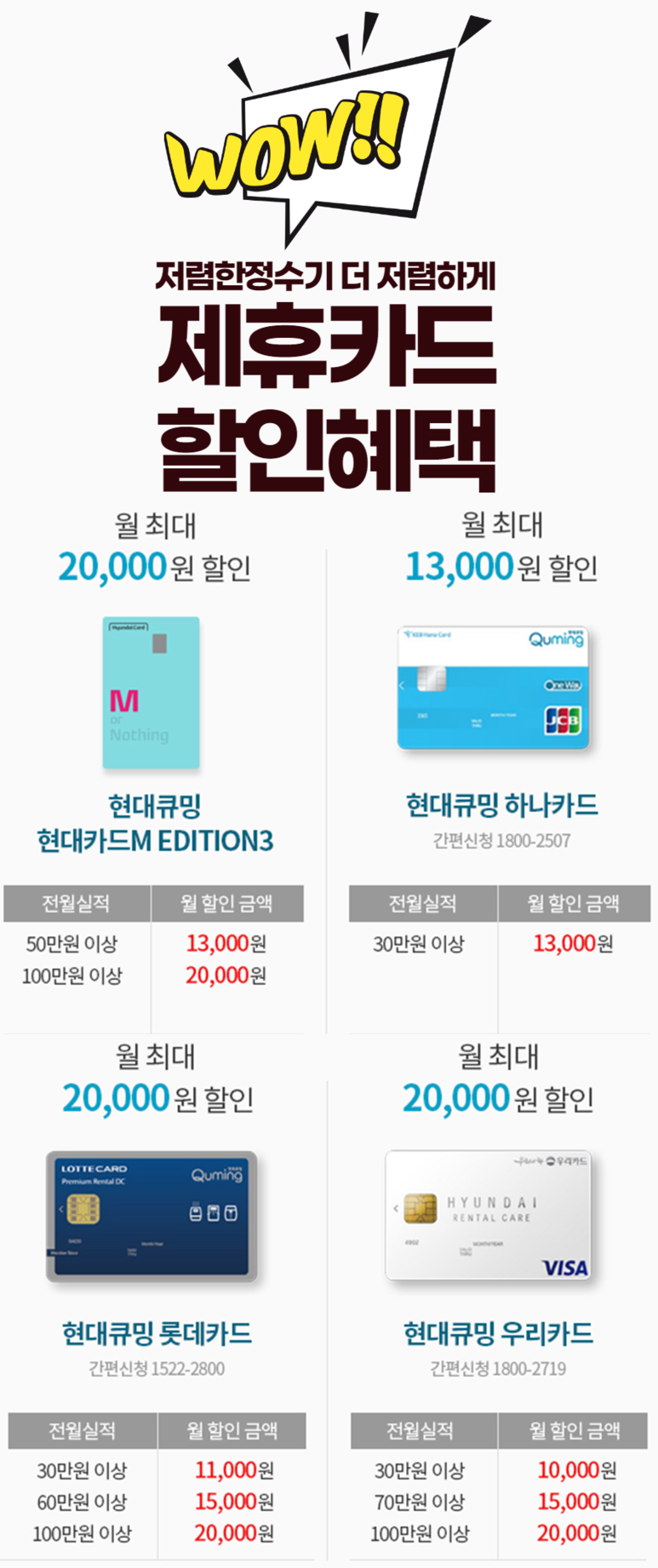 현대큐밍 제휴카드를 통해서 할인혜택까지 받아볼 수 있기 때문이에요!^^