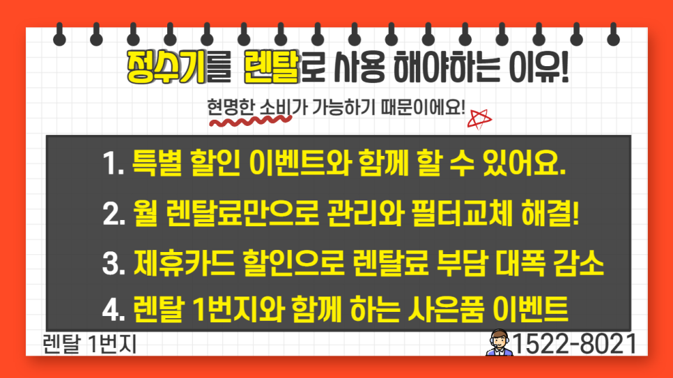 나에게 맞는 제휴카드 발급후 알뜰살뜰하게 정수기를 이용해보시면 좋을것같습니다!