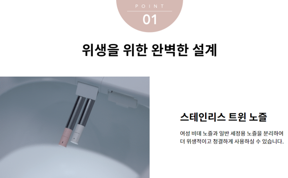세균번식에도 강하기 때문에 위생적인 노즐로 세정을 해주어요!