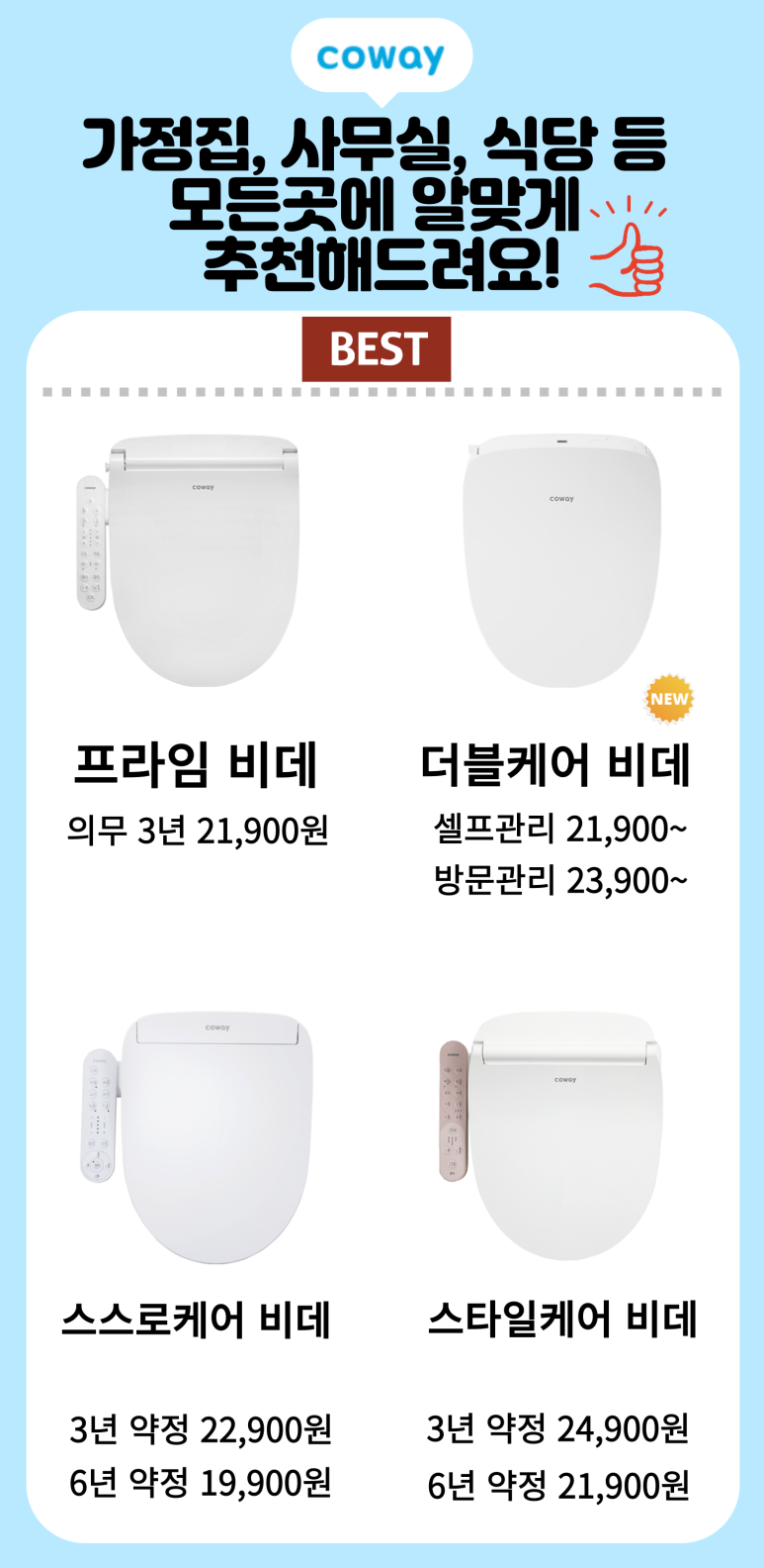 강동비데렌탈을 어떤 제품으로 해야할지 모르신다면!
