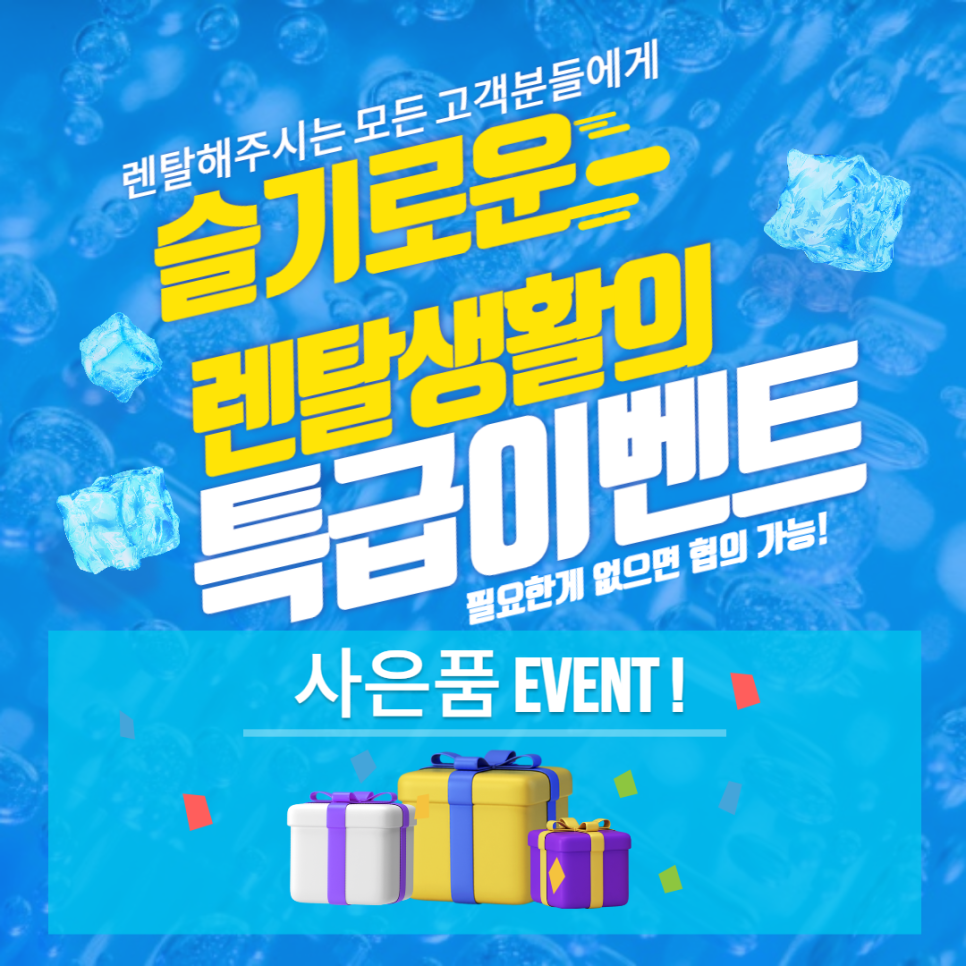 렌탈료를 3회 면제 받을 수 있는 프로모션이 진행중이에요!
