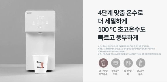 이제는 정수기로 100℃의 온수를 바로 받아볼 수 있으니