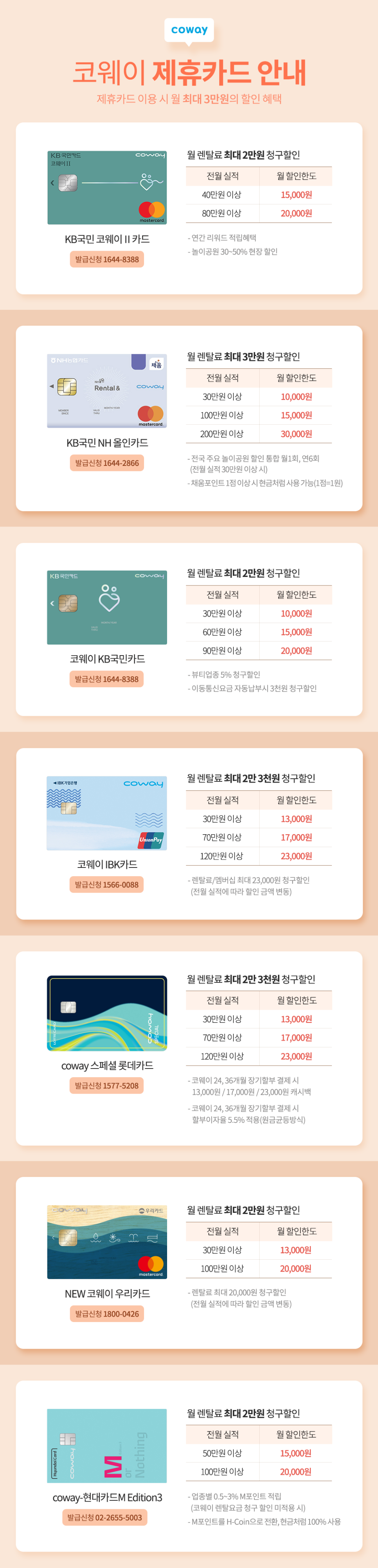 안녕하세요! 코웨이에서 아이콘 정수기가 최고의 인기를 누리고 있었는데요 이번에 더 새롭게 아이콘정수기2가 출시되었어요! 제가 포스팅을 하기 위해서 한번 살펴봤는데 진짜 기능 대박이고 어떻게 이렇게 더 완벽하게 출시될 수 있는지 역시 코웨이구나! 라고 생각이 들었는데요! 그래서 오늘 여러분들과 함께 아이콘정수기2의 새로워진 점들을 함께 알아보려고 합니다! 요즘 일상생활에 편리함을 주는 가전들이 많아지게 되면서 주방에 놓을 가전들도 다양해졌는데요. 그 중에서도 저는 정수기가 가장 중요하고, 또 가장 많이 찾는 주방 가전이라고 생각을해요! 그래서 코웨이에서는 필수적인 정수기를 설치하면서도 주방 공간이 더 여유로울 수 있도록 크기가 정~~말 작은 정수기인데요! 놀라지마세요! 정수기 깊이 사이즈가 25cm밖에 되지 않아요! 어떻게 이렇게 작게 만들었을지 대단하다고 느껴지네요. 정수기에서 가장 오염되기 쉬운 부분이라고한다면 공기나 먼지가 맞닿을 수 있는 파우셋인데요. 그래서 살균-세척-교체 3단계 완벽한 파우셋 위생관리가 이루어집니다. 사용자가 따로 신경을 쓰지 못하더라도 정수기가 알아서 살균을 해주는데요! 물을 추출 후 매번 살균을 해주고 취침시간이나 외출때에 정수기를 사용하지 않아도 6시간마다 알아서 UV 살균을 해줍니다. 이미지에 보이는것 처럼 파우셋을 정수기 윗면에서 위로 뽑아서 분리할 수 있어서 수시로 세척할 수 있어요 그리고 파우셋 전체는 안전한 트라이탄 소재로 되어있는데요! 이 소재의 장점은 환경 호름 걱정도 없어서 신생아에게도 안전한 친환경 소재이며, 강한 내열성과 내구성을 보여주어 오래도록 깨끗하게 사용할 수 있어요. 기능이 대박인게 원래는 정수기에서 보통 85℃ 정도되는 온수를 사용할 수 있었는데요. 이 때문에 정수기를 통해서 컵라면에 온수를 받을때에 다소 부족한 온도로 덜 익거나하여 제대로 이용하지 못했었는데 이제는 정수기에서 약 100℃의 초고온수도 빠르고 풍부하게 이용할 수 있어서 단점을 없애주었습니다! 초고온수 뿐만 아니라 4단계 맞춤 온수로 되어있으며 용량 맞춤 출수도 my용량이 추가되어 총 5단계 정량 출수가 가능합니다. 정수기 관리가 더욱 쉬워진 이유는 주요 부품은 원터치로 간단하게 교체할 수 있으면서 필터 교체 주기와 필터세척은 정수기가 알아서 다 해주기 때문인데요! 정수기에서 가장 중요한 필터 관리를 할때에 사용자가 따로 신경쓰지 않고 있어도 필터교체주기를 정수기가 파악하여 안내해줍니다! .주기적으로 필터를 교체해주면서 깨끗한 수질을 유지할 수 있으며 자가관리 후 폐필터도 알림톡으로 회수 신청을 하면 코웨이가 무상 방문 수거를 도와줍니다. 그리고 평상시에 제품에 이상이 있는지 없는지 수시로 확인할 수 있도록 준비되어있는데요! 만약에 자가관리를 하면서 제품의 이상이 발견되면 간단한 해결방법을 안내해주어 일일이 A/S를 신청할 필요가 없으며 해결되지 않는 고장일 경우에는 센서로 감지한 고장 부위를 고객센터에서 미리 알고있어 신속하고 정확한 A/S 접수가 이루어집니다. 냉수 추출 방식은 컴프레서를 없애고 전자 냉각 시스템으로 되어있어서 조용하게 냉각하여 출수되기 때문에 생활소음도 걱정없으며 온수도 순간 가열로 빠르게 가열하여 에너지도 절감해주고 4단계 온수 기능도 바로바로 이용해볼 수 있어요! 그리고 정수와 온수는 직수이면서 냉수는 저수조 방식이며 물이 닿는 부분이 안전한 소재이기 때문에 걱정없고 냉수를 더 빠르고 풍부하게 출수해주어 코웨이만의 시스템으로 되어있습니다. 아산코웨이정수기렌탈을 이용하면서 믿을 수 있는 품질은 물론 최고의 서비스와 함께 해볼 수 있는데요! 관리 방식도 고객의 사용 스타일에 따라 선택할 수 있어요. 문제없이 주기적인 방문관리를 받을 수 있다면 방문관리 약정을 선택하면 좋지만 요즘같이 바쁜 일상속에서 시간이나지 않아 제대로된 관리를 받지 못하는 분들이라면 주요 교체 소모품이나 자가관리키트를 택배로 배송받아서 내가 원하는 시간에 관리하는 셀프관리로 선택하여 늘 깨끗한 정수기로 사용하시면됩니다! 제가 오늘 아산코웨이정수기렌탈 추천을 해드렸는데요! 아이콘 정수기2를 보자마자 기존에도 좋았는데 더 좋아질 수가 있구나 ! 괜히 코웨이가 아니구나 라는 생각이들어서 아산코웨이정수기렌탈 추천을 꼭 해드리고 싶어서 이렇게 준비했어요! 완벽한 위생뿐만 아니라 디자인까지도 더 특별해진 코웨이 정수기를 제휴카드를 활용하면 최소 실적으로도 매달 13,000원을 할인받을 수 있으니 제휴카드도 꼼꼼하게 확인해보셨으면 좋겟습니다!